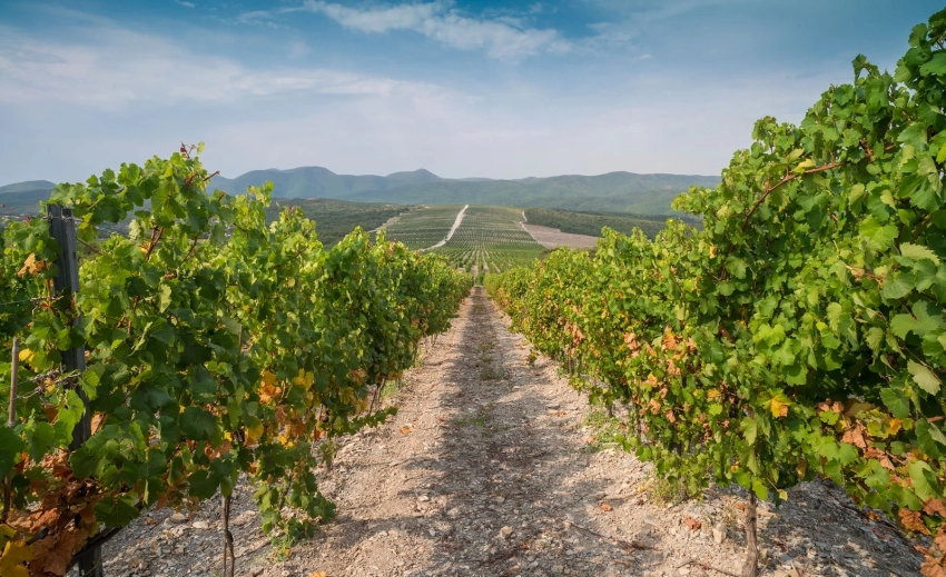 Виноградники скрывают уютные площадки «Дом виноградаря» и «Большое Шато». Особенно красиво здесь на закате, когда солнце окрашивает склоны в золотые и пурпурные тона, а каждый вдох становится медитацией.