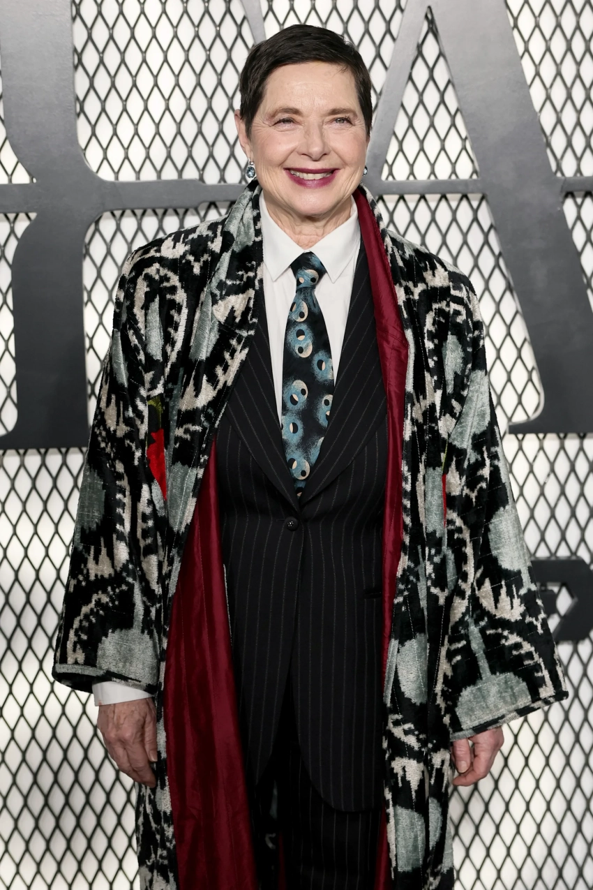 29-летняя супермодель Белла Хадид позировала в красном платье Schiaparelli с прозрачными вставками, а 47-летний Эштон Кутчер, который на днях был на "Золотом глобусе" с женой Милой Кунис, надел длинное серое пальто. Кинозвезда Изабелла Росселлини вышла на дорожку в бархатном пальто-халате и жакете с галстуком, а Амелия Грей пришла в синей шубе и прозрачном платье.